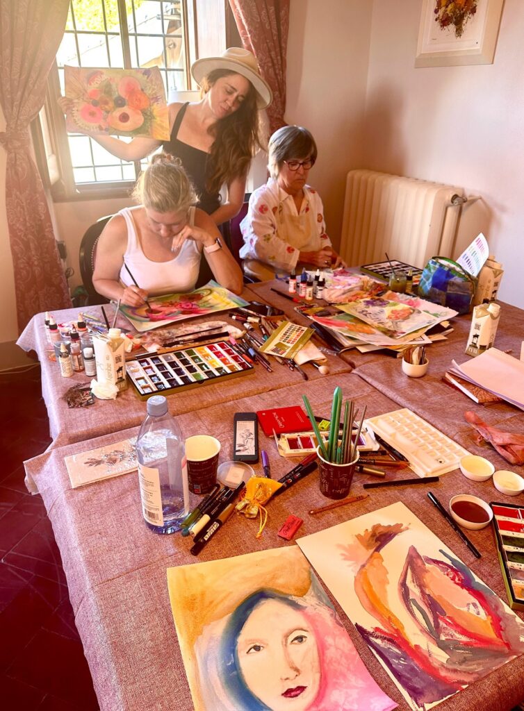 I have been teaching art for over 17 years, with thousands of students participants enrolled in my online classes. I lead retreats and workshops both at my studio and around the world. I also have 4 books out on painting, the creative process, and flower essences and have exhibited in galleries and a few museums. Ultimately, my sincere interest also lies in connecting to Nature, Spirit, and our shared humanity. Being a Reiki Master, Flower Essence Practitioner, and space holder for women infuses into every aspect of my work.