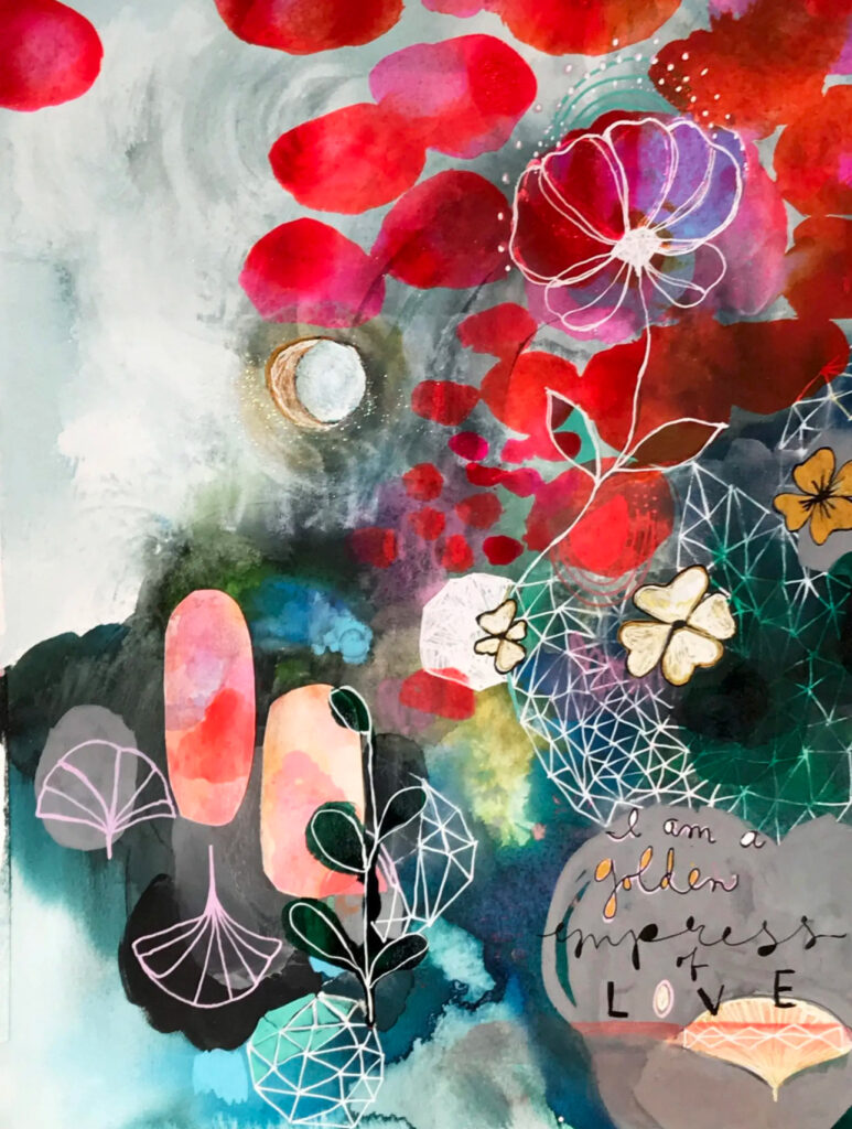 All fresh new lessons will be given this year that are drenched in a step-by-step way to build soul-filled painting and tools for magic making. All levels are truly welcome! Plus learn a wide range of technique, science of design composition, color theory, as well as embody effortless flow in your creative process.