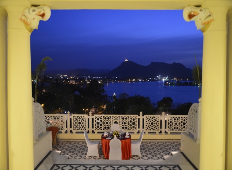Since the Laxmi resort is perched on a hilltop, it offers a spectacular view of the surrounding area in addition to the Fateh Sagar Lake and the Aravalli Hills. The rooms that form an integral part of the hotel exude grandeur and opulence. They have light cream colored walls and are tastefully decorated with stunning and priceless paintings and artifacts. Every night during dinner you can enjoy sunset over the hills and lake, along with live music and folk dance.