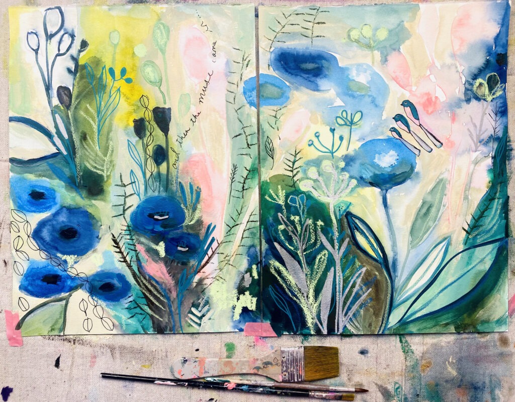 On amazing sale today! People are making THE MOST BEAUTIFUL PAINTINGS ever from any of my classes and history of teaching 1000’s of students. You can too plus its on brilliant sale (such a win-win). You will receive immediate access to an entire year’s lessons of paintings. You can then go at your own pace and choose which lessons speak to you the most (or do all from start to finish – so fun)!